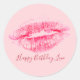 Adesivo Redondo Lábios Rosa Lusciosos Feliz Amo de Aniversário