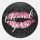 Adesivo Redondo Lábios Rosa Quente Beijar Brilho Negro Obrigado
