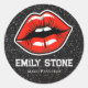 lábios vermelhos de maquiagem com adesivos redondos clássicos brilhantes, criar adesivos modernos e bonitos, você pode personalizar todo o texto.