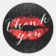 Adesivo Redondo Lábios Vermelhos Beijam Largura Preta Obrigado