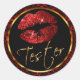 Adesivo Redondo Lábios vermelhos com brilho na impressão leopardo