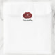Este adesivo apresenta uma ilustração de lábios vermelhos escuros ligeiramente separados com o seu nome escrito abaixo. Este seria um bom toque para envelopes, papel de carta, raspagem, sacos de presentes, Dia de os namorados e muito mais.