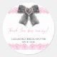 Adesivo de agradecimento de Chá de Noiva moderno e elegante com laço preto coquete em aquarela com borda de renda rosa e texto em caligrafia vibrante.