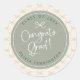 Adesivos de formatura personalizados versáteis que podem ser usados como lembrancinhas ou selos de envelope. Mostrados numa paleta de verde sálvia, verde escuro e branco, sobre um fundo de padrão de laço dourado. (Embora todas as cores sejam editáveis por si.) Personalize o modelo com um ano de formatura e nome. © Kimbellished, LLC