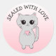 Lindo gatinho caprichoso desenhado à mão com um coração rosa. Adesivos Lacrados com Amor são fofos para selar envelopes de aniversário, casamentos, chá de bebê ou qualquer outro cartão.