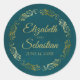 Adesivo Redondo Lacy Gold Filigree Elegant Dark Teal Wedding Names