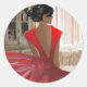 Mulher linda de vermelho! Vestido para impressionar para qualquer ocasião de feriado. Esta ilustração parcimoniosa é o presente perfeito.