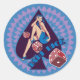 A personificação da sorte, da fortuna e do estilo. *Garota vintage alfinetando cercado em um halo de espadas e diamantes em um adesivo.