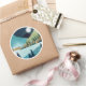 Uma bela paisagem com texturas únicas mostrando uma paisagem de lago de montanha com lua ascensão e céu estrelado em tons de azul, ouro, verde e turquesa.