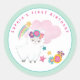 Um design de Lama branco e fluffy para a primeira festa de aniversário da sua filha com uma borda verde de menta, arco-íris, estrelas e flores que você pode usar para selar envelopes ou bolsas de festa. O texto curvado em rosa pode ser facilmente personalizado e você também pode alterar cores, tamanho e fonte do texto, etc. através da opção Clique para Personalizar Mais, assim como a borda verde que é a cor de fundo na ferramenta design.