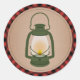 Um adesivo com ilustração de uma lanterna verde de acampamento. O plano de fundo é o estoque de cartão inspirado na xadrez vermelha e preta.