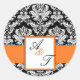 Adesivo Redondo Laranja Casamento Monograma Damask Seal