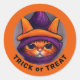 Adesivo Redondo Laranja Gato Roxo de Bruxa Trick Treat Halloween