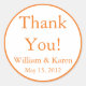 Adicione o toque final ao seu obrigado... seus presentes ou favores de casamento com esse obrigado redondo personalizado que você cola. Você também poderia usar esses adesivos personalizados como selos de envelopes para seus cartões de agradecimento. Estes adesivos personalizáveis apresentam texto cor de laranja médio sobre um fundo branco com uma borda laranja. Certifique-se de verificar os envelopes coordenadores, as placas, o papel de carta e outros produtos de cor laranja média na nossa loja.
