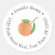 Este design de adesivo flexível apresenta uma única laranja aquarela com folhas, rodeada por texto preto carvão em um formato circular. Mostrado aqui para um adesivo de endereço de devolução, mas todos os campos de texto são flexíveis às suas necessidades.