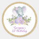 Adesivo Redondo Lavanda Dourada de Elefante Roxo Obrigado