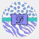 Você encontrará muitos usos para este adesivo decorativo com o seu monograma inicial. Aproveite esta combinação sofisticada e na moda de pele com stripe de zebra e pele de leopardo ou de chita personalizada com o seu monograma inicial. Esta popular e moderna lavanda roxa e branca zebra branca e padrão de design de impressão leopardo está disponível em várias combinações de cores. Um emblema periwinkle em um azul-turquesa ou uma faixa aqua cria uma área de personalização para seu monograma ou nome. Isso é totalmente personalizável e está disponível em vários produtos de coordenação nesta loja.