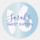 Dê ao seu Sweet 16 um toque legal e na moda com este adesivo atordoante, com um fundo metálico azul gelado e um texto branco "16" em negrito. Com um nome personalizável, é perfeito para personalizar favoritos para festas, sacos de presentes, selos de envelopes, decorações, cartões de obrigado e convites. Este na moda e glamouroso design adiciona sofisticação e brilho a qualquer celebração do Sweet 16, fazer que seja um acessório incontornável para um evento de aniversário chic, trendy e inesquecível.