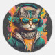 Adesivo Redondo Legal Groovy Cat com Fones de ouvido ouvindo músic