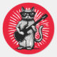 Adesivo Redondo Legal Rock E Roll Cat Tocando Violão Elétrico