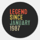 Adesivo Redondo Legend Since January 1987 &#; th Birthday &#; Yea