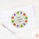 Um adesivo de legumes engraçados, redondo e personalizável, com legumes de desenho engraçados e bonitos, dispostos em círculo e texto personalizado. Tomate vermelho, brócolis verde e berinjela violeta têm um olhar maravilhoso em seus grandes olhos de desenho animado. Este adesivo engraçado seria perfeito para cozinheiros e pessoas que amam cozinhar e vegetais.