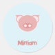 Adesivo Redondo Leitão cor-de-rosa monograma em azul