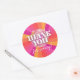 Esta etiqueta circular ou adesivo "Obrigado por Vir" de festa disco cor-de-rosa e laranja está aqui para animar a sua festa dos anos 70! Esta etiqueta ou adesivo de agradecimento para imprimir é um design divertido com cores brilhantes e padrões funky para capturar a essência de qualquer celebração ao estilo dos anos 70. Esteja você planejando uma festa hippie, descolada, tie-dye, disco ou apenas uma festa divertida dos anos 70 - esta pequena etiqueta de favor ajudará a criar uma aparência coesa para a sua festa de aniversário temática disco, chá de noiva, despedida de solteira, festa de formatura e muito mais!