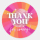 Esta etiqueta circular ou adesivo "Obrigado por Vir" da Disco Party rosa e laranja está aqui para animar a sua festa dos anos 70! Esta etiqueta ou adesivo de agradecimento para imprimir é um design divertido com cores vibrantes e padrões funky para capturar a essência de qualquer celebração ao estilo dos anos 70. Esteja você planejando uma festa hippie, descolada, tie-dye, discoteca ou apenas uma festa divertida dos anos 70, esta pequena etiqueta de favor ajudará a criar um visual coeso para a sua festa de aniversário temática de discoteca, chá de noiva, despedida de solteira, festa de formatura e muito mais!
