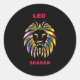 Celebrando o cartaz do zodíaco para Leo com a imagem de um leão-arco-íris e o texto Leo Season impresso em vermelho.