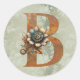 Adesivo Redondo Letra B Floral Steampunk Vintage