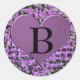 Um coração bonito e roxo com a letra "B" nele, neste doce adesivo redondo.