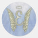 Monograma de anjo dourado da letra E com asas de anjo e um halo.