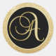 Etiquetas de focas/etiquetas lindas para os seus favores, envelopes, cartões de agradecimento, etc. Monograma inicial "A" em design de ouro único. Brilho Dourado e preto. Toda a fonte, cor e tamanho do texto podem ser alterados. Veja mais em MONOGRAMMED STICKERS/SEALS. Contate o designer para obter outras letras monográficas ou cores de fundo.