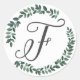 Adesivo Redondo Letra F Monograma Mínimo Folha Botânica Mínima