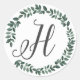 Adesivo Redondo Letra H Monograma Mínimo Folha Botânica Mínima