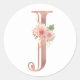 Adesivo Redondo Letra J Monograma Dourado Rosa com Flor Rosa Bege