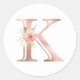 Adesivo Redondo Letra K Monograma Dourado Rosa Foil Flor Rosa Beig