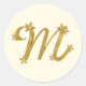 Adesivo Redondo Letra M Monograma Dourado com Detalhes Florais Cre