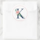 Adesivo Redondo Letra Monográfica Preta K com Flor Rosa