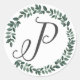Adesivo Redondo Letra P Monograma Mínimo Folha Botânica Mínima