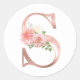 Adesivo Redondo Letra S Monograma Dourado Rosa Flor Rosa Bege com