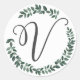 Adesivo Redondo Letra V Monograma Mínimo Folha Botânica Mínima
