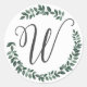 Adesivo Redondo Letra W Monograma Mínimo Folha Botânica Mínima