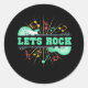 Adesivo Redondo Lets Rock Retro Music Rock And Roll Guitar Nota M