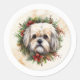 Adesivo Redondo Lhasa Apso Christmas Wreath Festivo Pup