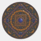 Esta mandala de Libra apresenta uma pedra de safira cercada pelo símbolo da placa, a constelação, e o símbolo alquímico de Ar entre filigrana e tecavernas.