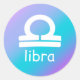 Um conjunto de autocolantes redondos com o símbolo astrologico para Libra sobre um fundo de gradiente azul e roxo. Para alguém que faz aniversário entre 23 de setembro e 22 de outubro.