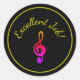 As aulas de música recompensam o adesivo, com um design de clave colorido e uma inscrição amarela personalizável. Colocado sobre um fundo preto, este adesivo é excelente de encorajar seus alunos em sua jornada musical.