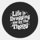 Adesivo Redondo Life Is Dragging Me By The Thong